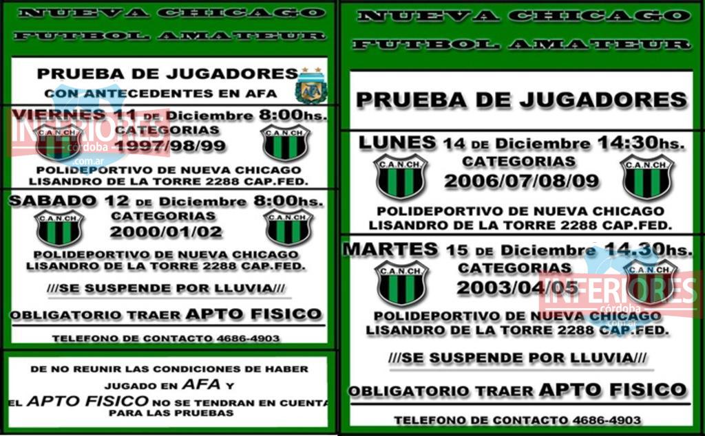 Nota: Los jugadores a presentarse deberán contar con DNI, ropa de entrenamiento, canilleras, botines y el certificado de Apto Médico.