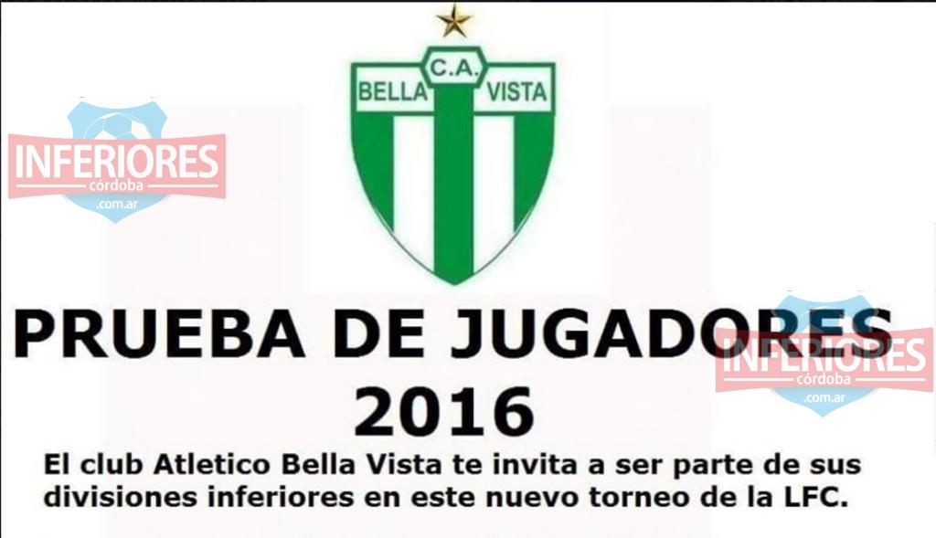 El club Bella Vista comenzará a probar jugadores todos los lunes, martes, miércoles y jueves a partir de las 16 hs en su cancha ubicada en la calle Rufino Zado y Paso de Los Andes en barrio Bella Vista. Las pruebas estarán a cargo del coordinador de las divisiones inferiores de la institución, Matías Montenegro.
