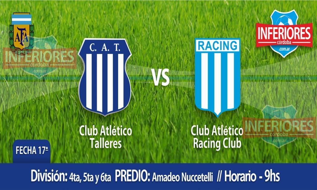 Pasando al equipo de Barrio Jardín, el Club Atlético Talleres recibirá en el Predio Amadeo Nuccetelli a Racing Club de Avellaneda por la 17ma Fecha de la Copa Campeonato, en los siguientes horarios y divisiones: