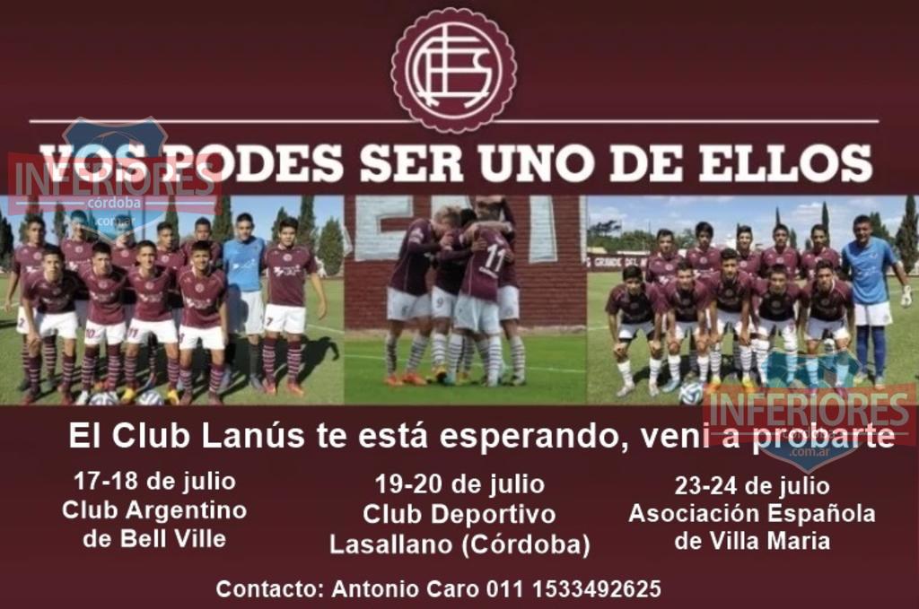 El club Lanús, durante el mes de Julio, va a realizar pruebas de jugadores libres en la provincia de Córdoba. Las pruebas que se van a realizar en Córdoba, van a estar a cargo del Profesor Antonio Caro, Captador del Club “Granate”.