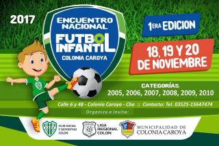 Del 18 al 20 del corriente mes, en la localidad cordobesa de Colonia Caroya se vivirá el 1° Encuentro Nacional de Fútbol Infantil en el cual participarán las categorías 2005 a 2010.